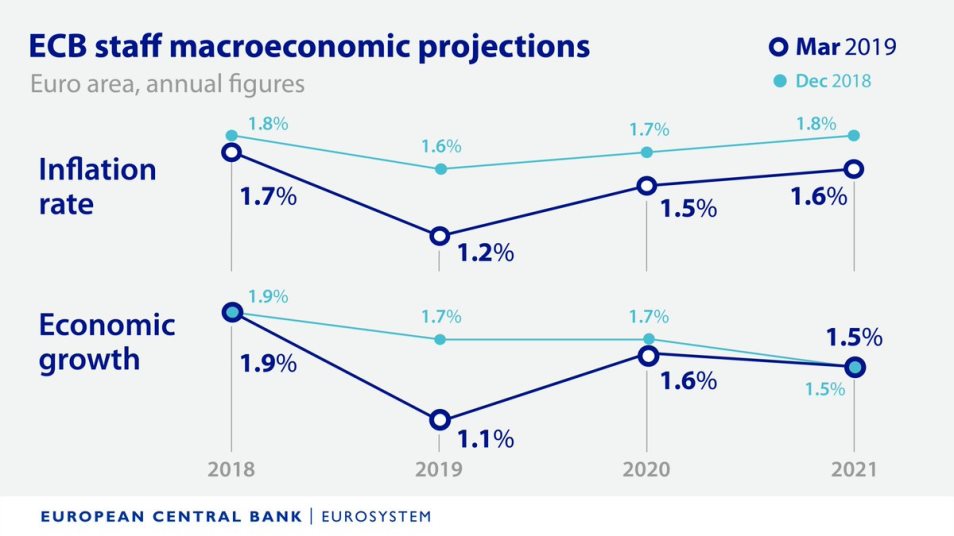 As a point of comparison, the actual interest rate for 2018 was sitting at 1.7%. Apparently, this reduction in inflation with a half per cent is owing to the global stagnation of economic out, however, the ECB's determination to change the trend is looking promising. Mario Draghi pointed out that new jobs are being opened in the bloc's labour market and the wage growth rate is exceeding expectations and beating the performance for the fourth quarter of 2018, which are both indications of the monetary policy working in the right direction.