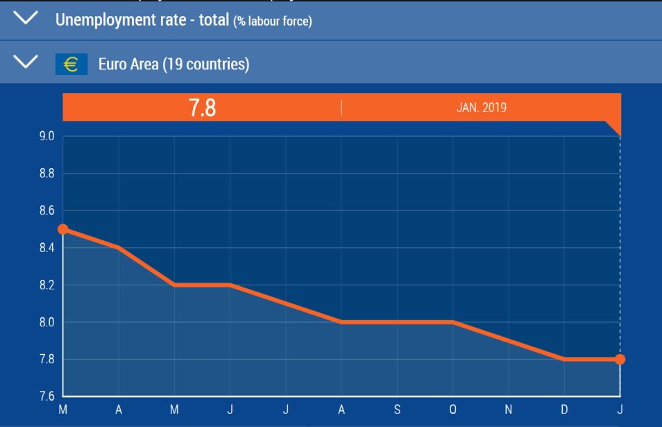 However, it would take time for the monetary policy to catch up to the rampant developments in global affairs and adjust the prices accordingly, which is the main reason why Mario Draghi advised investors to be patient and allow the market to adjust itself. This disparity between the rising nominal wages and the decreased prices at the private sector can also be attributed to foreign influences, stemming from the global economic sphere. The European Area labour statistics showcase a steady rate of decline in unemployment levels, which is an indicator of the resilience of the European economy:
