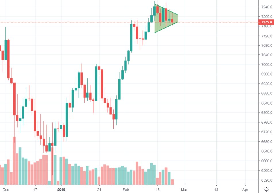 Meanwhile, the UK100 index is once again trading just above the 7170 support level, and the price consolidation is creating a volatility bubble.