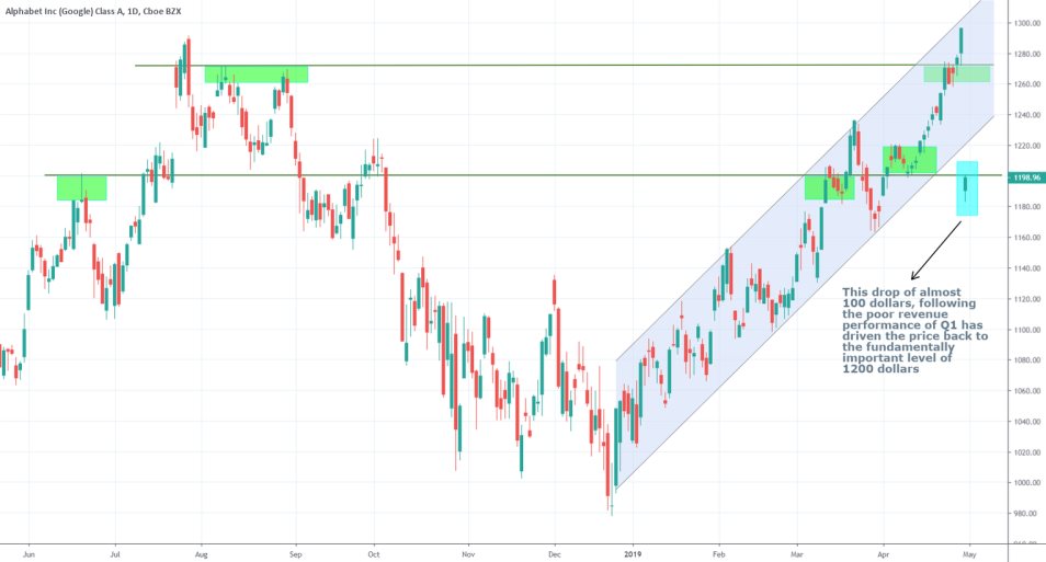 Alphabet’s stock eventually closed Tuesday’s trading session at 1198.96, which measures a drop of 97.24 dollars from Monday’s closing price of 1296.20.
