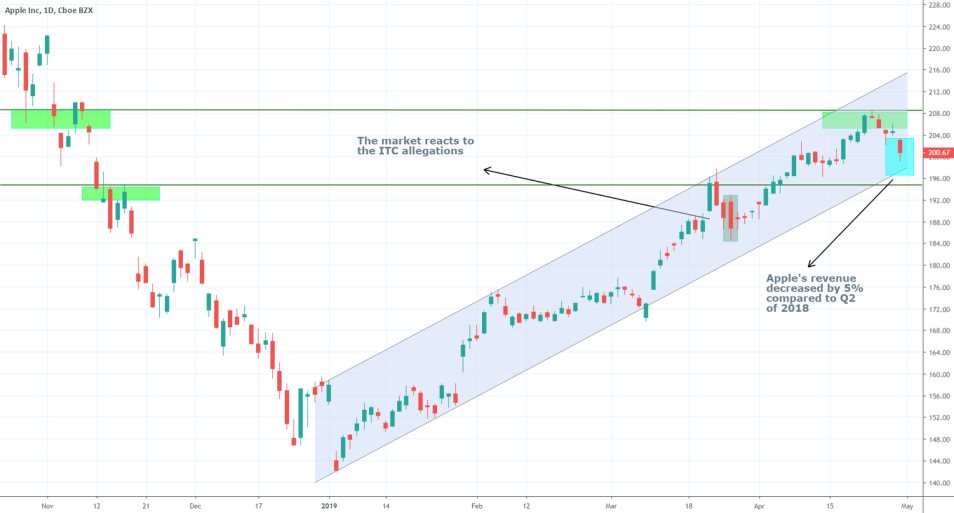 Apple Inc. reported earnings for Q2 of the fiscal 2019 year, and although the reported EPS of $2.46 beat the initial forecasts of $2.37, the company’s stock fell with 1.93% during Tuesday’s trading session.