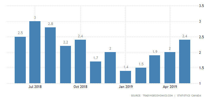 In regards to inflation, the trend of gradually increasing inflation rate that was initiated in January of 2019 was continued in May as well, when the underlying inflation rate surpassed the BOC's target level of 2 per cent and also the market expectations of 2.1 per cent by setting the final tally at a total of 2.4 per cent.