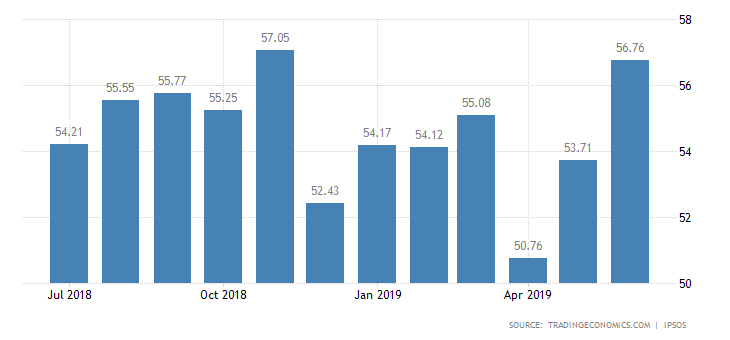 The consumer confidence index in the country has measured a noticeable hike in June, which underlines the expected continuation of the recent trend of robust price stability in the economy, which is also supported by markedly increasing investment rates. The index rose with more than 3 points in the last month, thus reaching 56.76 points.