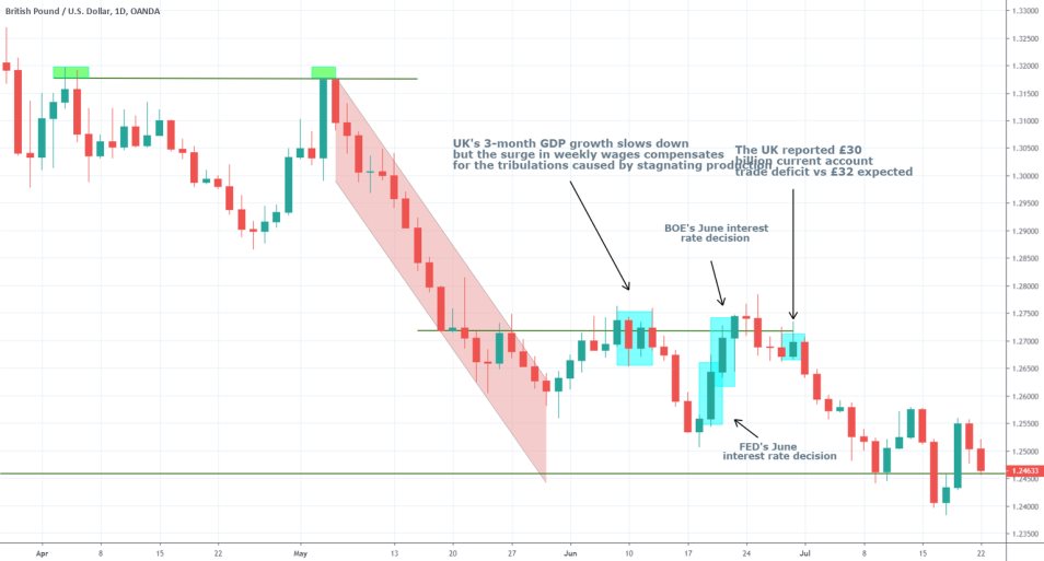 The pound has been tumbling steadily for the entire month of July, and the likely win of Boris Johnson would possibly put additional pressure on the GBPUSD pair, which could collapse to levels last seen in April 2017.