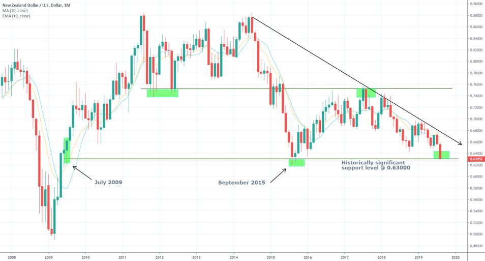 The steadily deteriorating business confidence index exemplifies the current economic conditions in the country, and the NZDUSD's substantial bearish trend is being directly impacted by the same economic conditions. The pair has lost 3.86 per cent of its value in August and is currently trading at 0.63030, which is a historically important support level that has been prevailing since September of 2015.