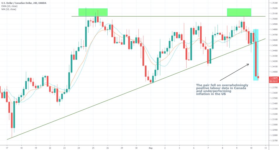 As a result of the two reports, the USDCAD pair fell with 0.51% in the first 15 minutes after the releases of the two separate data sets. While the Canadian dollar found strong support from the overwhelmingly positive labour data, the greenback is being pressured by the disappointing CPI data, and as a result of that, the FED would have more headaches ahead of the next FOMC meeting. The central bank needs to find a way to stimulate consumer spending, which can get the inflation numbers back on track with the target level of 2%.