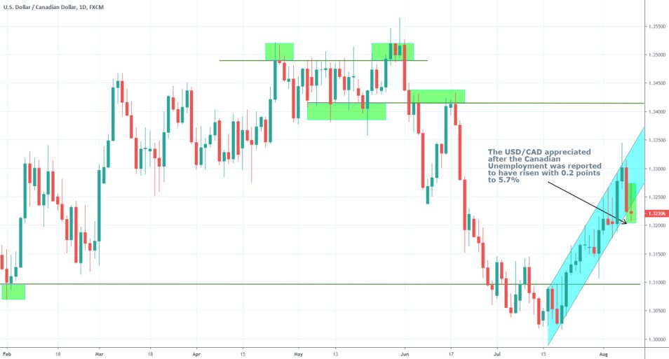 Overall, the initial market reaction of the USDCAD to the news was to appreciate with 50 pips to 1.32740, but then the price corrected itself, and the pair once again reverted itself below the bottom-boundary of the recent bullish trend.