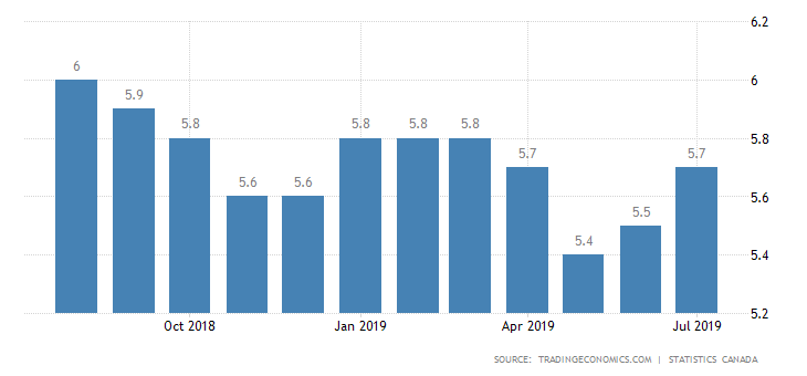 The Canadian unemployment rate has risen with 0.2 percentage points in July to 5.7 per cent, as reported by Statistics Canada. Thus, the recent trend of slowly rising unemployment has almost reached the point where the Canadian economy could be said to no longer be working at full employment.