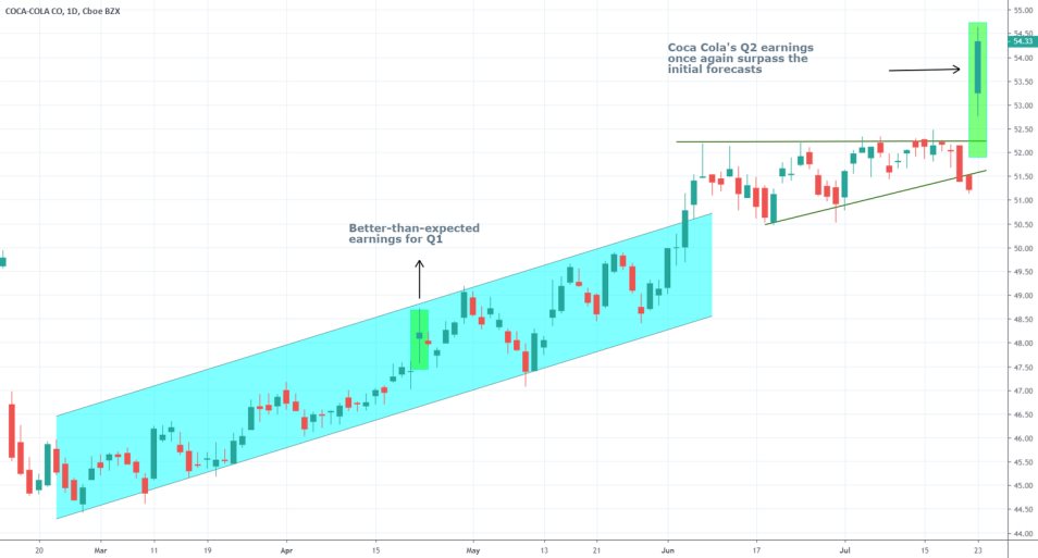 Thus, the reported revenue of the beverage giant for the second quarter reached $10 billion as opposed to the $9.99 billion expected. The share price closed yesterday's trading session at 54.33, which is an all-time record for Coca Cola.