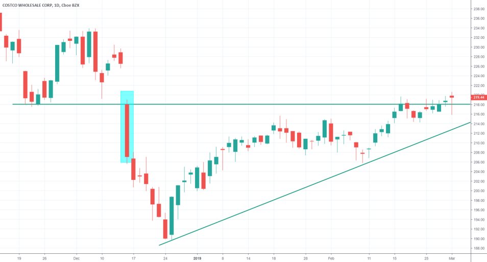 Costco is American multinational cooperation, which operates a chain of membership warehouses and is traded on the Nasdaq. The company is set to report its quarterly earnings for the fiscal quarter ending February 2019th. The actual report is going to be released on the 07/03/19 after the market close. The forecast is for 1.67 earnings per share.