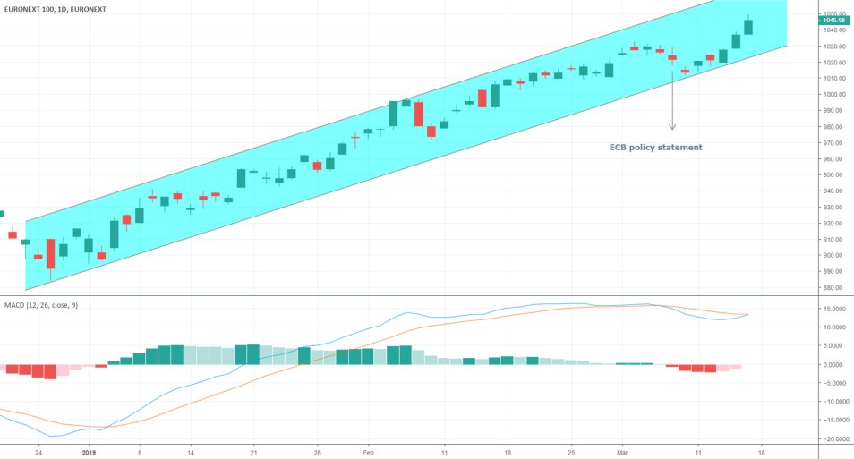 For the Euronext 100, one of the biggest composite indexes in Europe, 2019 has thus far been a year marked by a significant bullish momentum with gains exceeding 150 basis points before the end of the first quarter.