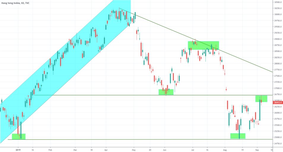 Meanwhile, the Hang Seng index, the main stocks index in Hong Kong, registered a 3.90 per cent gain in yesterday's trading session following the announcement of Lam. The price of the index is currently trading around 26700, which is a crucial resistance level that has been established on the 4th of January. Should the price manage to break above that level successfully, the next logical target would be 1000 points higher at 27700, which is the upper boundary of the reclining channel.