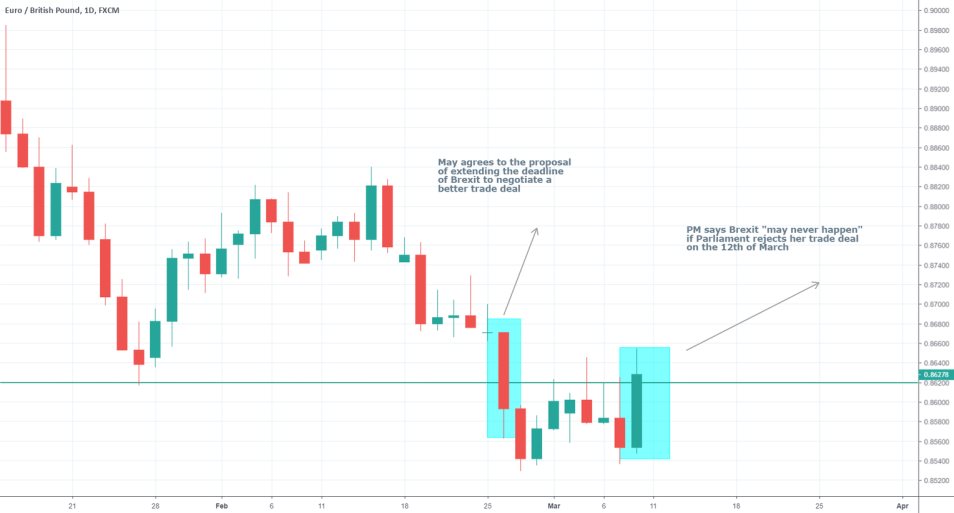 This warning comes just days after it became known that the PM had agreed to extend the deadline for the negotiations of a trade deal with Parliament, to give her more time to adjust her stance and push it through successfully. The news was received positively by the market and the GBP appreciated with more than 1% against the other major currencies on the 26th of February, however, this time Theresa's vocal threat did not receive such a positive review, and the GBP slipped once again into negative territory.