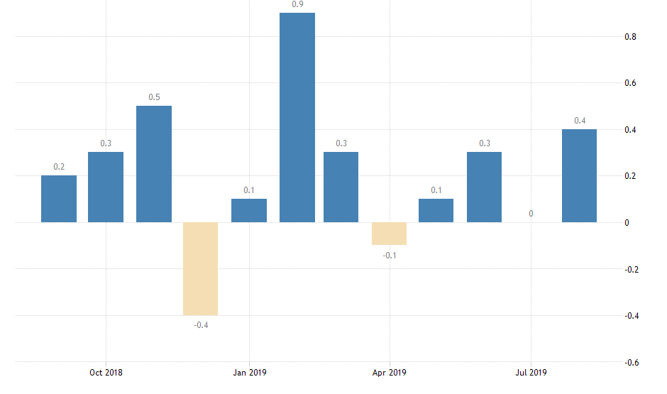 “The seasonally adjusted estimate rose 0.4% in August 2019. This follows a relatively unchanged result (0.0%) in July 2019 and a rise of 0.3% in June 2019.”