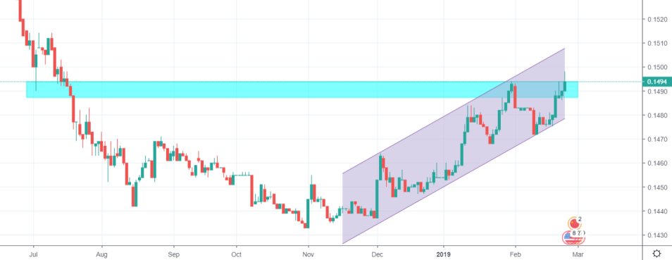 The Chinese Yuan tried to extend its gains against the greenback but found resistance just below the critical level of 0.1500, which could potentially break the currency pair's bullish channel.