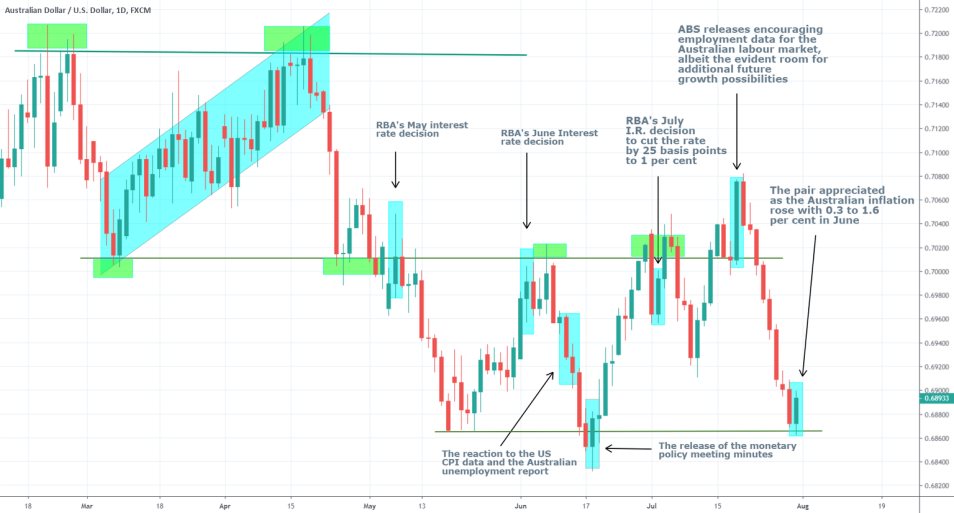 This statement is taken from the last interest rate meeting of the Board of Directors of the RBA from the 2nd of July, more on which you can read here. Thus, the economic situation is developing according to the projections and estimations of the RBA, which is prone to increase the investors’ confidence, and they can now look more assuredly on the ultimate success of the RBA’ recent decision to lower the underlying interest rate.