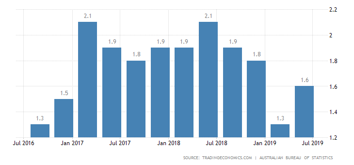 The underlying inflation rate rose to 1.6 per cent over the twelve months to the June quarter, which improved on the reported 1.3 per cent for the twelve months to the March quarter and demonstrated improving monetary conditions in the country. [source]