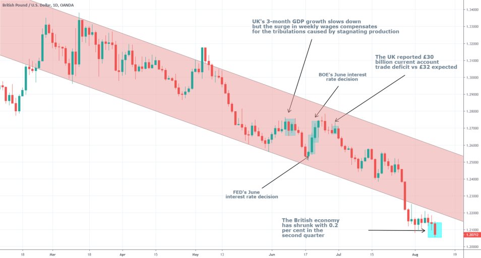 The GBPUSD pair decreased with more than 0.50% after the GDP data was released to the public, and is now trading at around 1.20600, which is the lowest level since January of 2017.