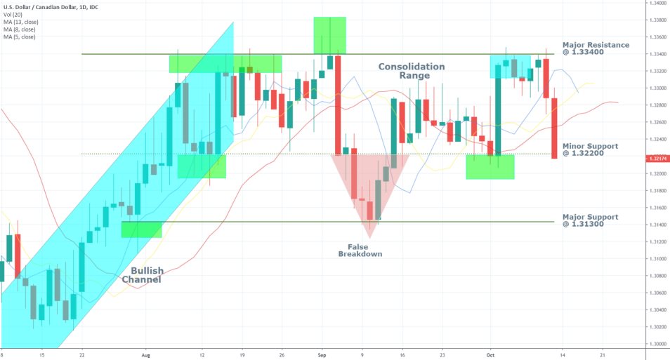 Consequently, the USDCAD fell by 0.52 per cent during Friday’s trading session, immediately after the release of the report. The pair is currently trading at around 1.32190, which is just around the minor support level at 1.32200.