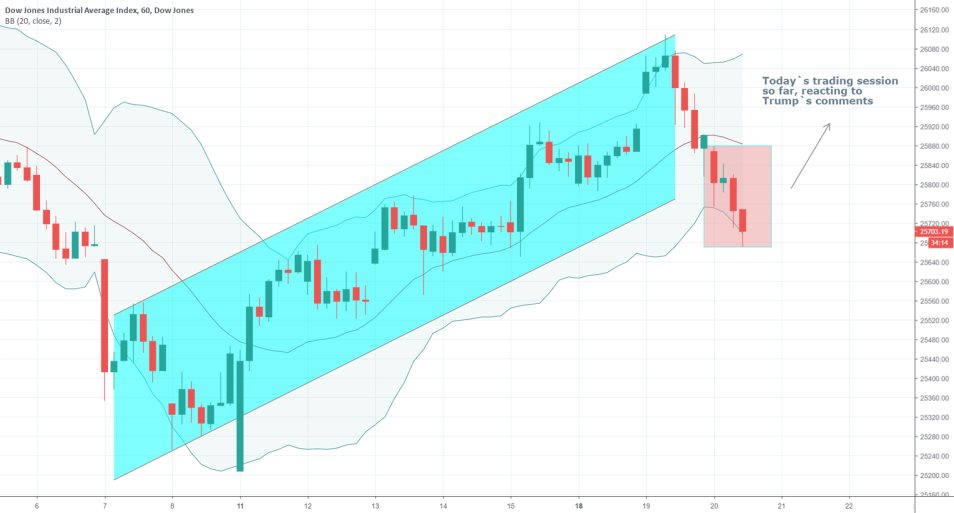 Then today, in a now-typical manner of shocking statements, President Donald Trump hinted at a potential prolonging of the whole situation, and as a result, the Dow Jones Industrial fell with -0.70% (6.30pm UTC) on the threats that global trades woes might be allowed to continue.