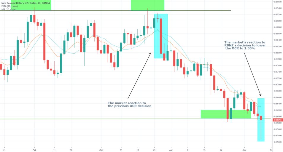 Despite the prevalent market forecasts for the RBNZ to maintain the interest rate at the previous 1.75% level, early today the central bank stated that it has decided to bring about a change to its monetary policy. The Reserve Bank of New Zealand was prompted to implement these changes after a noticeable difference in the underlying economic conditions of the country. The decision ultimately fulfilled our expectations that were raised in the previous market update, as we reasoned that the central bank has more than enough incentives to lower the interest rate.