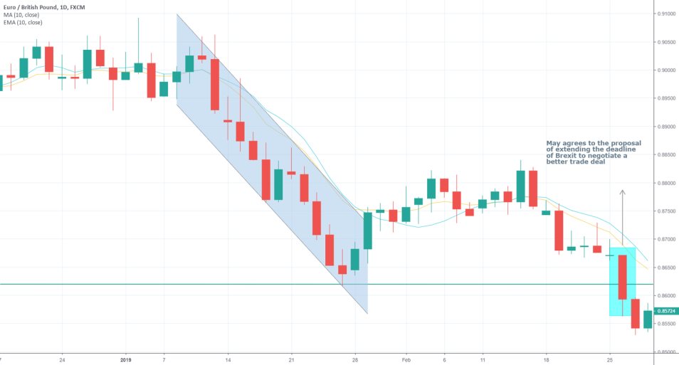 Last week it became apparent that PM Theresa May is sympathetic with the idea of postponing the divorce plan, which was initially set for the 29th of March, in an attempt to prevent a no-deal Brexit, which could potentially spell disaster for the sterling and the future of the British economy.