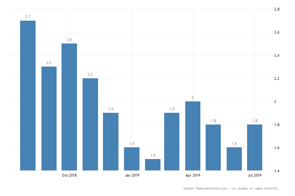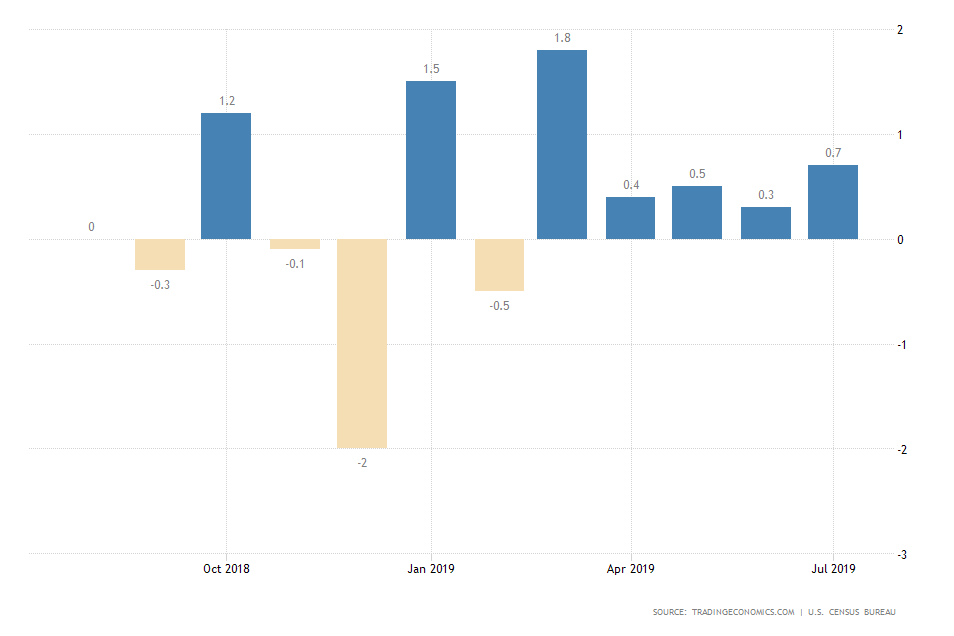 Secondly, the United States Census Bureau is scheduled to release the monthly adjusted Retail Sales data on Friday, and the overall market forecasts project a nominal appreciation of the index with only 0.2 per cent as opposed to the recorded 0.7 hike from the previous release. The observed jump in the US retail sales in July, with the aforementioned 0.7 per cent, was the most sizable monthly appreciation from the previous four times, which gave investors reason to relax a bit. However, due to the new spats between Trump and Jinping’s administrations, the retail sales are expected to once again underperform owing to the newly created trade tensions.