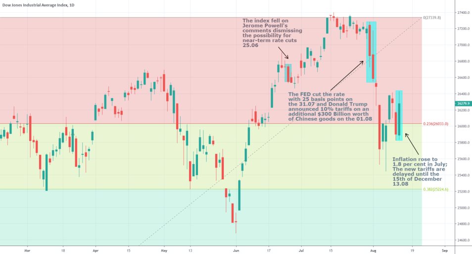 The Dow Jones Industrial Average finished the trading day with a 1.48 per cent total gain, by breaking above the fundamentally important 23.6 per cent Fibonacci retracement level at 26033.0, and eventually closing at 26279.9.
