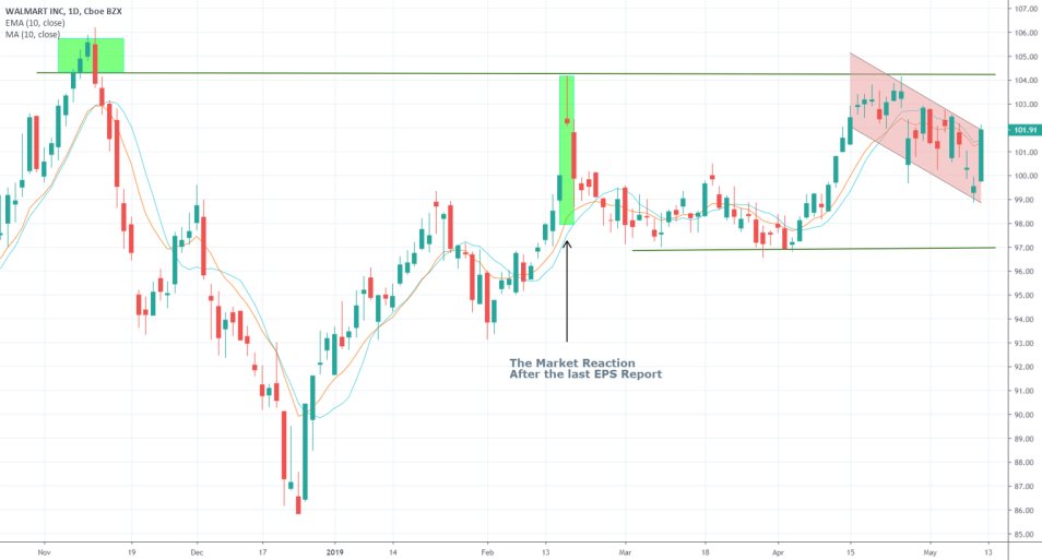 Nonetheless, Walmart has managed to surpass the initial expectations on every occasion during the last four reports, which gives investors certain hopes that the company might outperform itself once again and thus surprise the market. After the previous EPS report, the overall market surprise amounted to 6.02%, which correspondingly led to a spike in the company’s stock price with 2.21% in the intraday trading session.