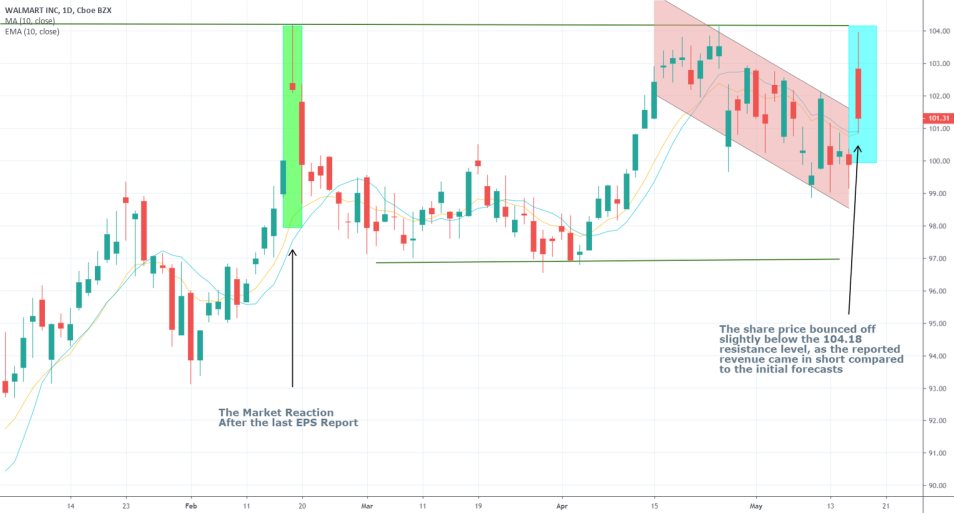Walmart Inc. reported EPS of $1.33, which greatly exceeds the company’s performance for the same period last year when the EPS was reported at only 72 cents.