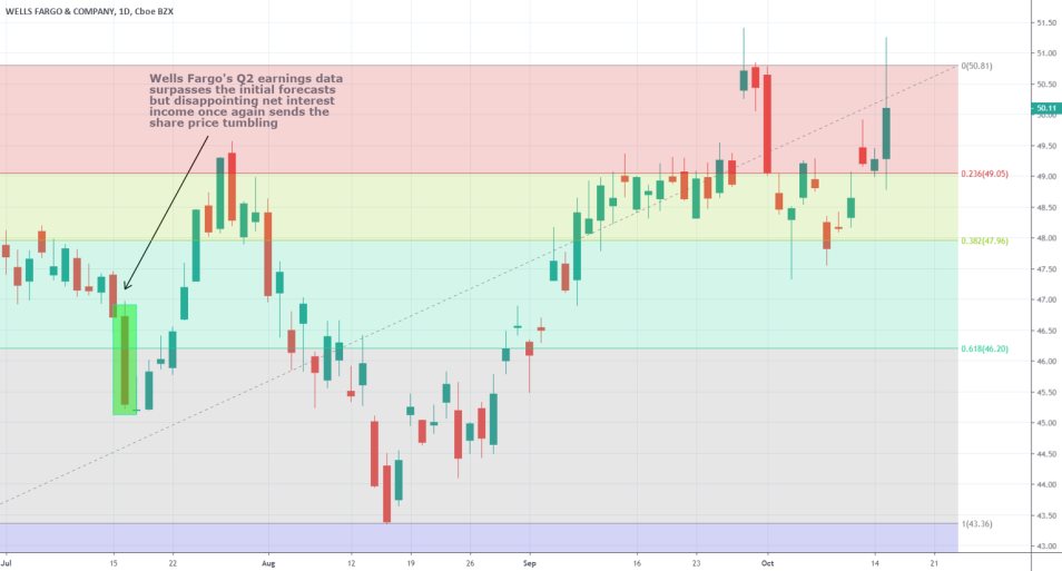 Wells Fargo's share price found strong support at the 23.6 per cent Fibonacci retracement level at 49.5 and subsequently appreciated by 1.70 per cent during Tuesday's trading session.